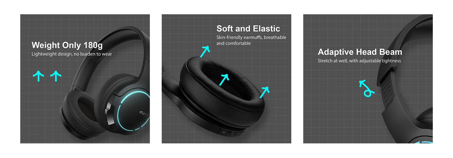 The G2BT headset seamlessly integrates dynamic GB backlight technology, creating a captivating E-sports atmosphere with its stunning multi-color gradient cycle design.