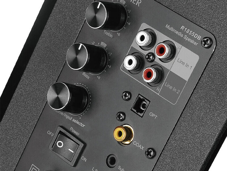 Line In, Coaxial, and Optical ports are ready for the connection with multiple devices. To scale up to a 2.1 music system, connect a subwoofer to the Sub Out port and then enjoy more powerful bass output.