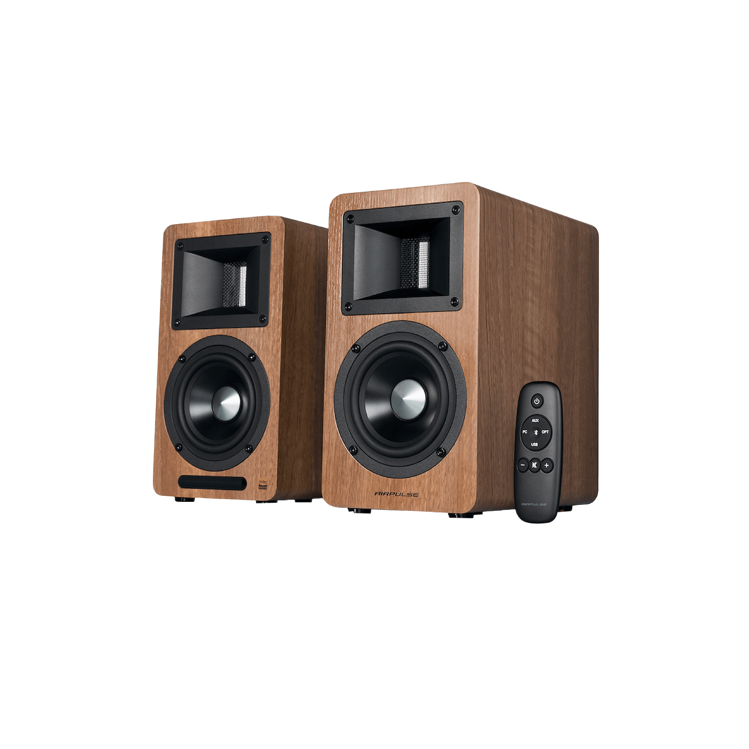 Das aktive Regallautsprechersystem Airpulse A80 ist eine perfekte Kombination aus einzigartig gestalteten konventionellen Lautsprechern und digitalen Systemen von XMOS. Es unterstützt die hochwertige Audiowiedergabe in Hi-Res und verfügt über eine offizielle Hi-Res-Zertifizierung. Sie sind in einem 18 mm dicken, hochfesten MDF-Gehäuse mit wunderschönem Walnuss-Finish untergebracht.