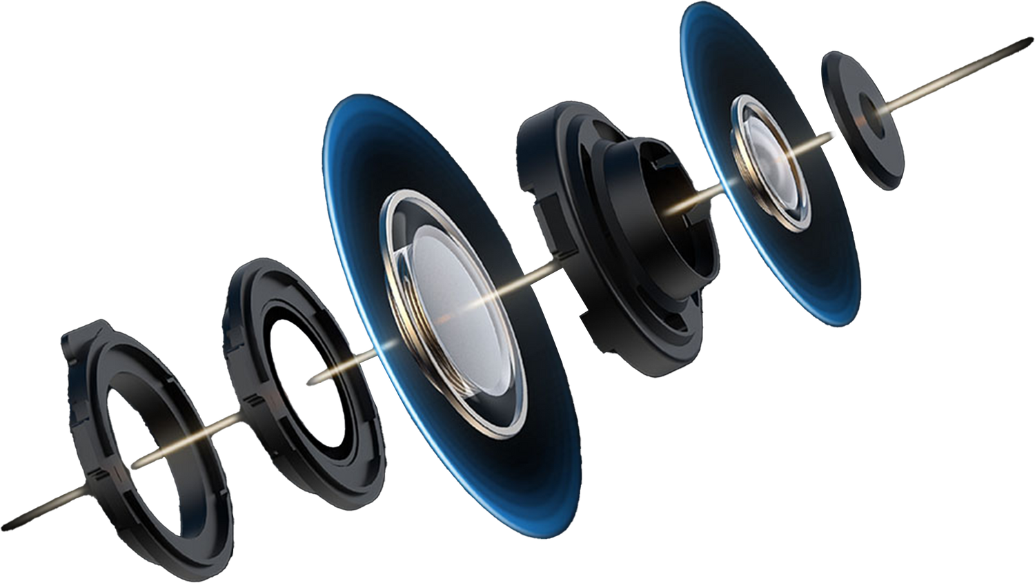Dos controladores diseñados en un eje paralelo ofrecen una experiencia de audio natural, rica en detalles y de alta definición. Un woofer de 10 mm y un tweeter de 6 mm integrados en cada auricular garantizan un rango de respuesta de frecuencia más amplio y crean una sensación auditiva inmersiva.