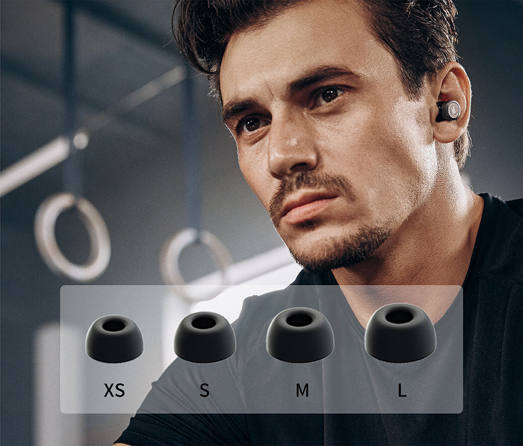 Se incluyen 4 tamaños diferentes de almohadillas para los oídos para adaptarse a diferentes formas de orejas para un ajuste seguro y estable.