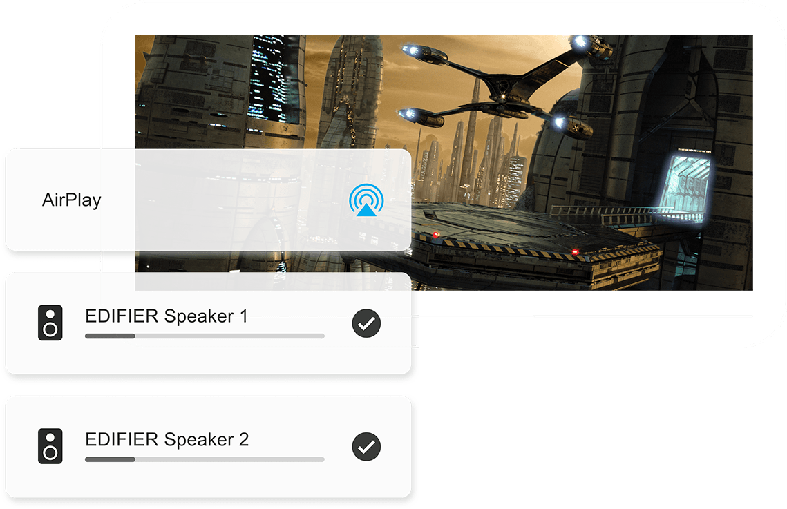 Vous aimez écouter votre musique sur plusieurs haut-parleurs ? Appuyez simplement sur chaque haut-parleur Wi-Fi Edifier pour les activer et régler le volume à votre guise.