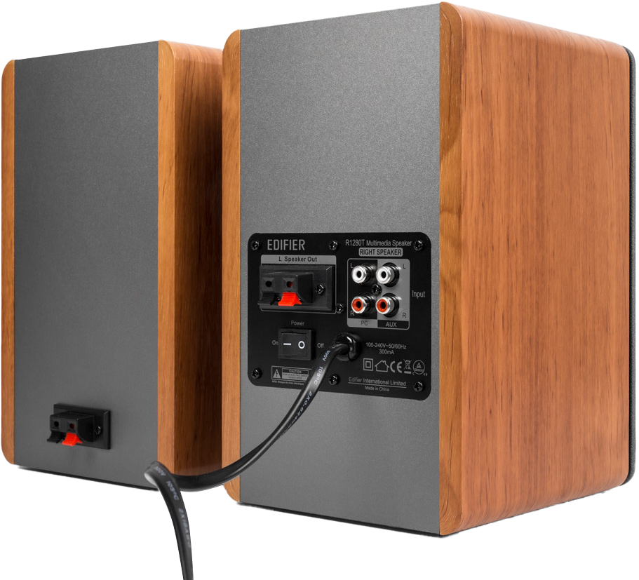 Les enceintes bibliothèque alimentées R1280T vous permettent de vous connecter à plusieurs appareils audio à l'aide des deux entrées RCA. En regardant le panneau arrière, vous pouvez facilement dire que l’un d’entre eux est un haut-parleur passif et l’autre un haut-parleur actif. L'enceinte active dispose de deux entrées situées à l'arrière. Ces entrées sont parfaites pour les connexions RCA vers RCA ou RCA vers AUX. Connectez-les à un PC, un ordinateur portable, une tablette, un téléphone ou un tourne-disque. Les haut-parleurs sont connectés les uns aux autres via un fil de haut-parleur ordinaire. La variété de câbles inclus permet à nos clients de profiter de leur musique depuis la plupart des appareils dès la sortie de la boîte.