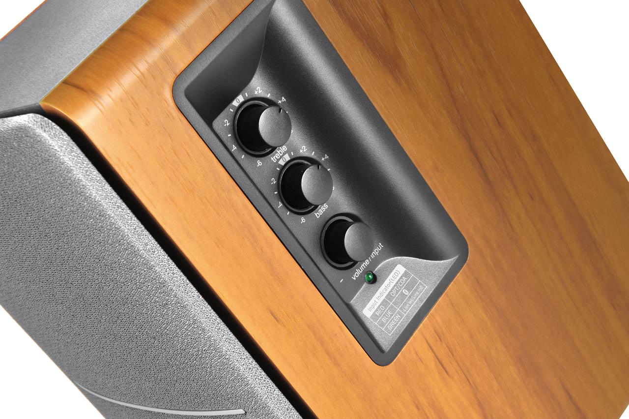 Ajustez l'égaliseur à l'aide des commandes intégrées situées sur le haut-parleur Bluetooth actif/alimenté. Boutons d'aigus, de basses et de volume situés sur le panneau latéral. L'accessibilité claire aux commandes embarquées et les fonctionnalités modernes renforcent l'amabilité des haut-parleurs Bluetooth alimentés par le R1280BD. Des commandes claires et concises complètent le manuel offrant une durée de lecture ininterrompue.