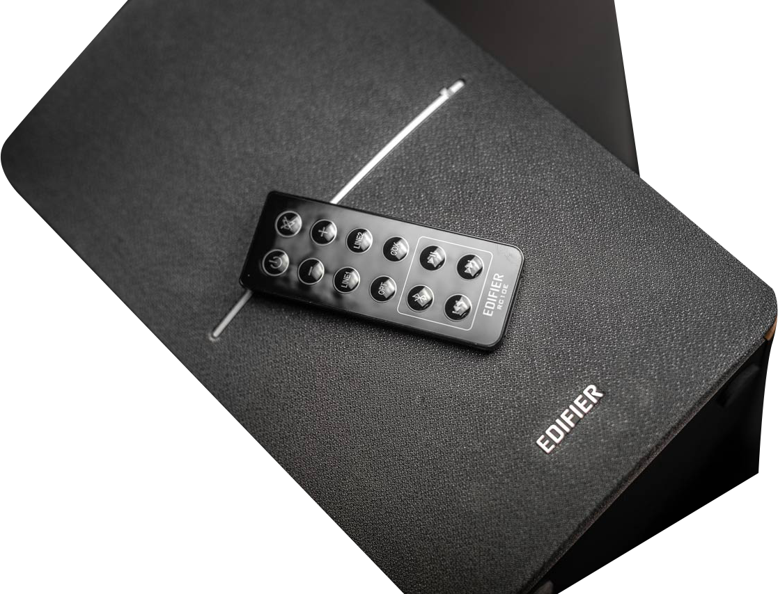 Avec la nouvelle télécommande noire sans fil et élégante, le R1280DB met le pouvoir entre vos mains. Contrôlez vos enceintes de bibliothèque Bluetooth alimentées et connectez-vous à votre appareil dans un confort total. Activez la lecture avec les boutons situés dans le carré avec le logo Bluetooth.
