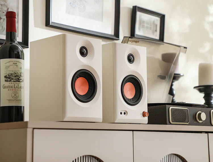 I diffusori a gamma media-bassa da 3,5" finemente regolati e i tweeter a cupola di seta da 1" offrono una potenza totale di uscita di 18W x 2 (RMS) e una pressione sonora di 92,5 dB SPL (picco a 1 metro). Sono adatti all'ascolto ravvicinato e abbastanza potenti da riempire una stanza di medie dimensioni.
