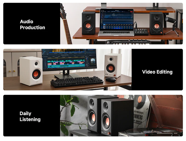 L'EDIFIER MR3 presenta una risposta piatta che copre un'ampia gamma di frequenze da 52Hz a 40kHz. Di conseguenza, può riprodurre un suono neutro e trasparente.